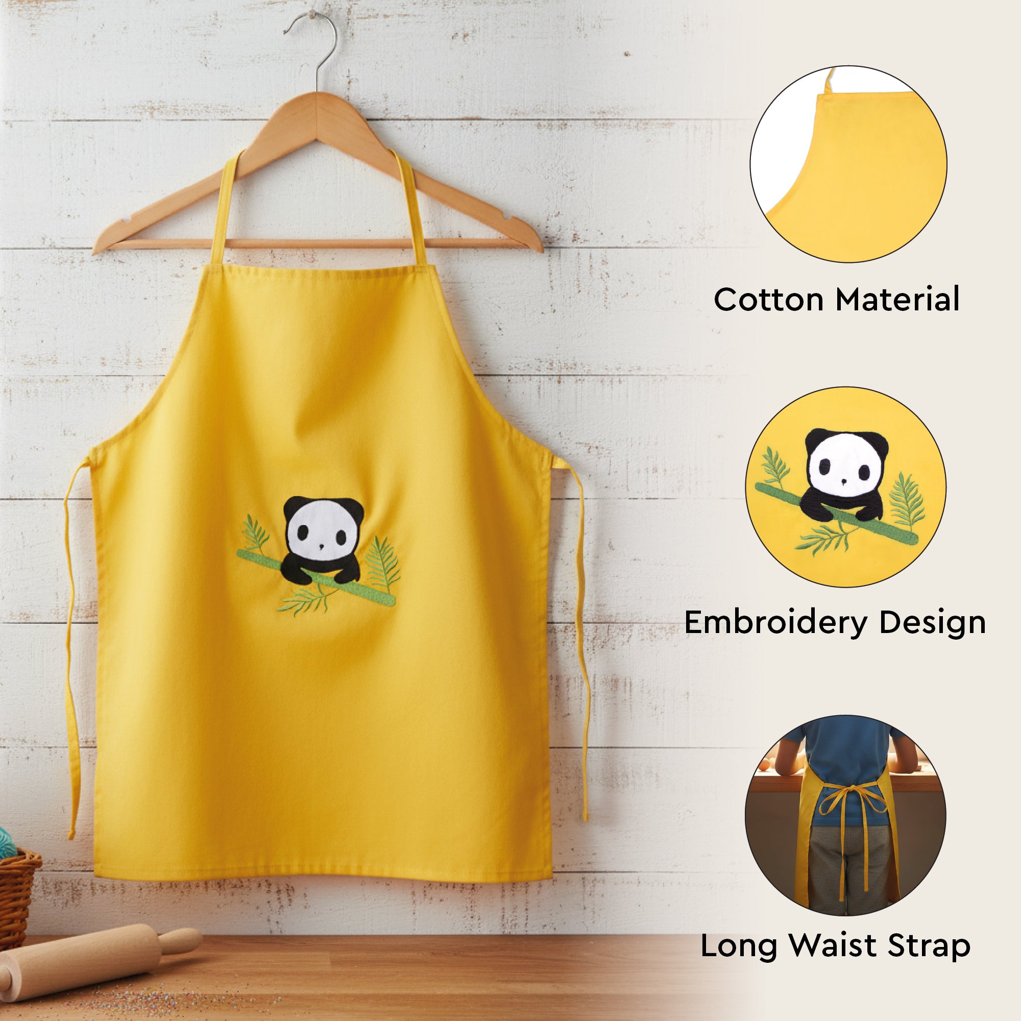 Tiny Panda Perch Kids Organic Embroidered Twill Cotton Apron 1 Pcs