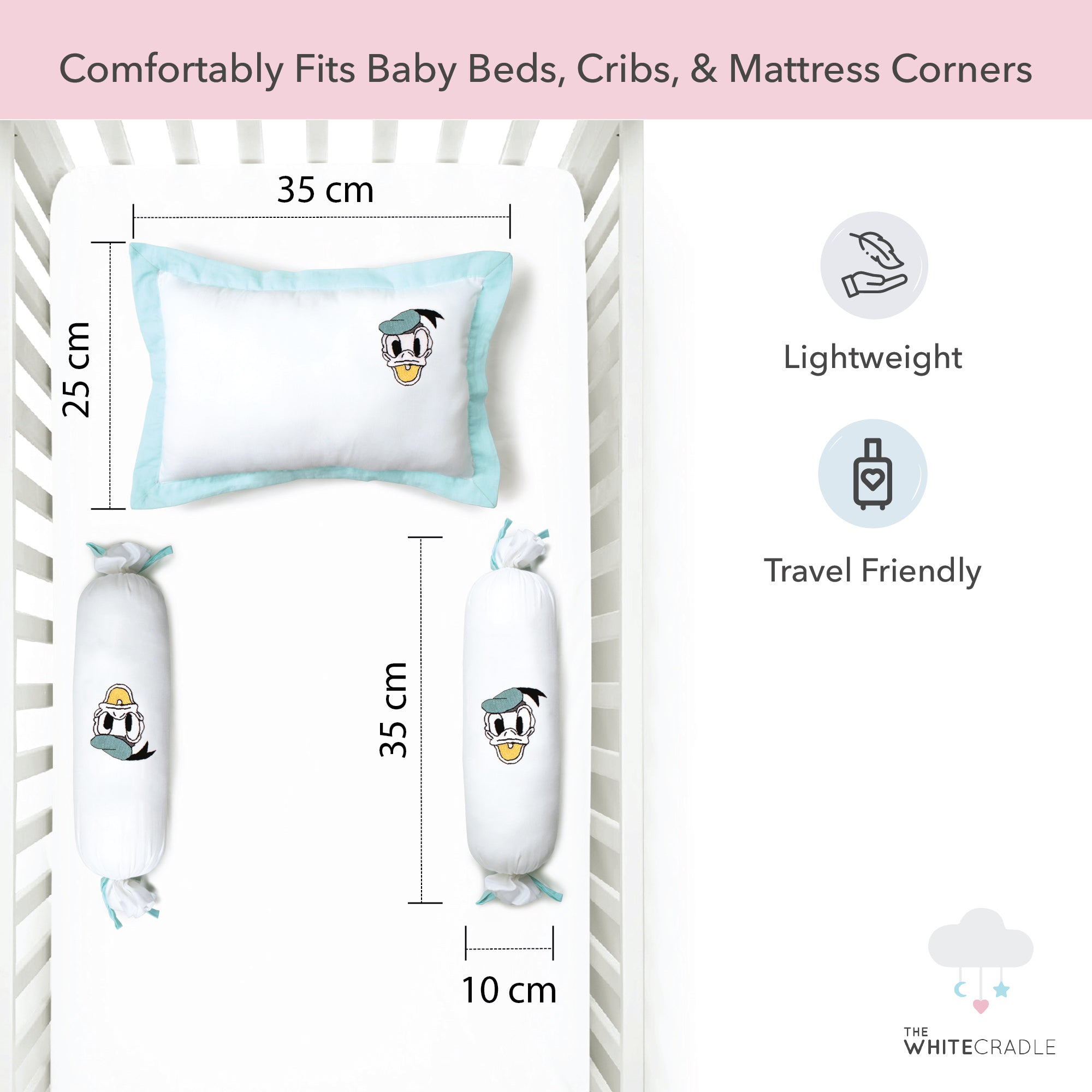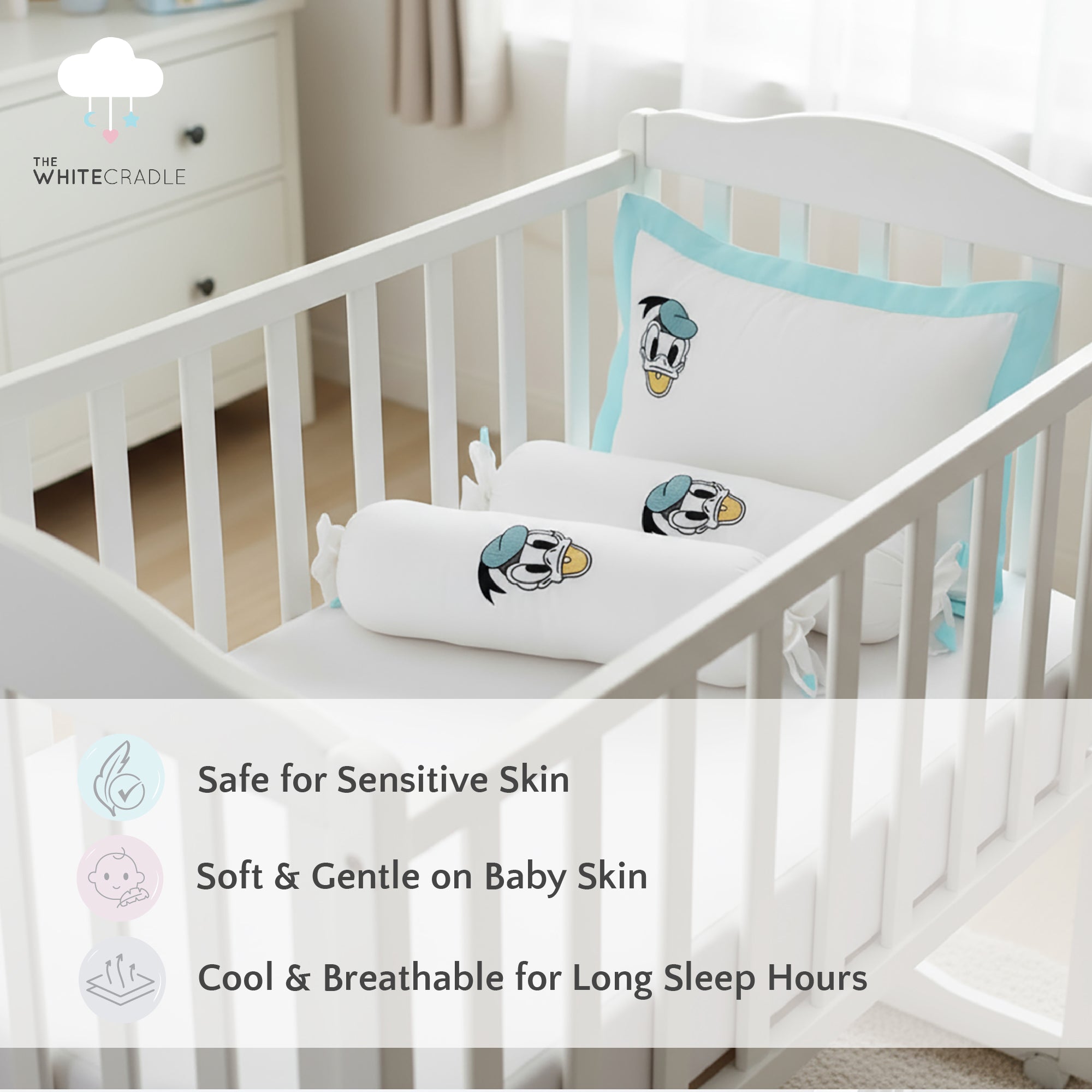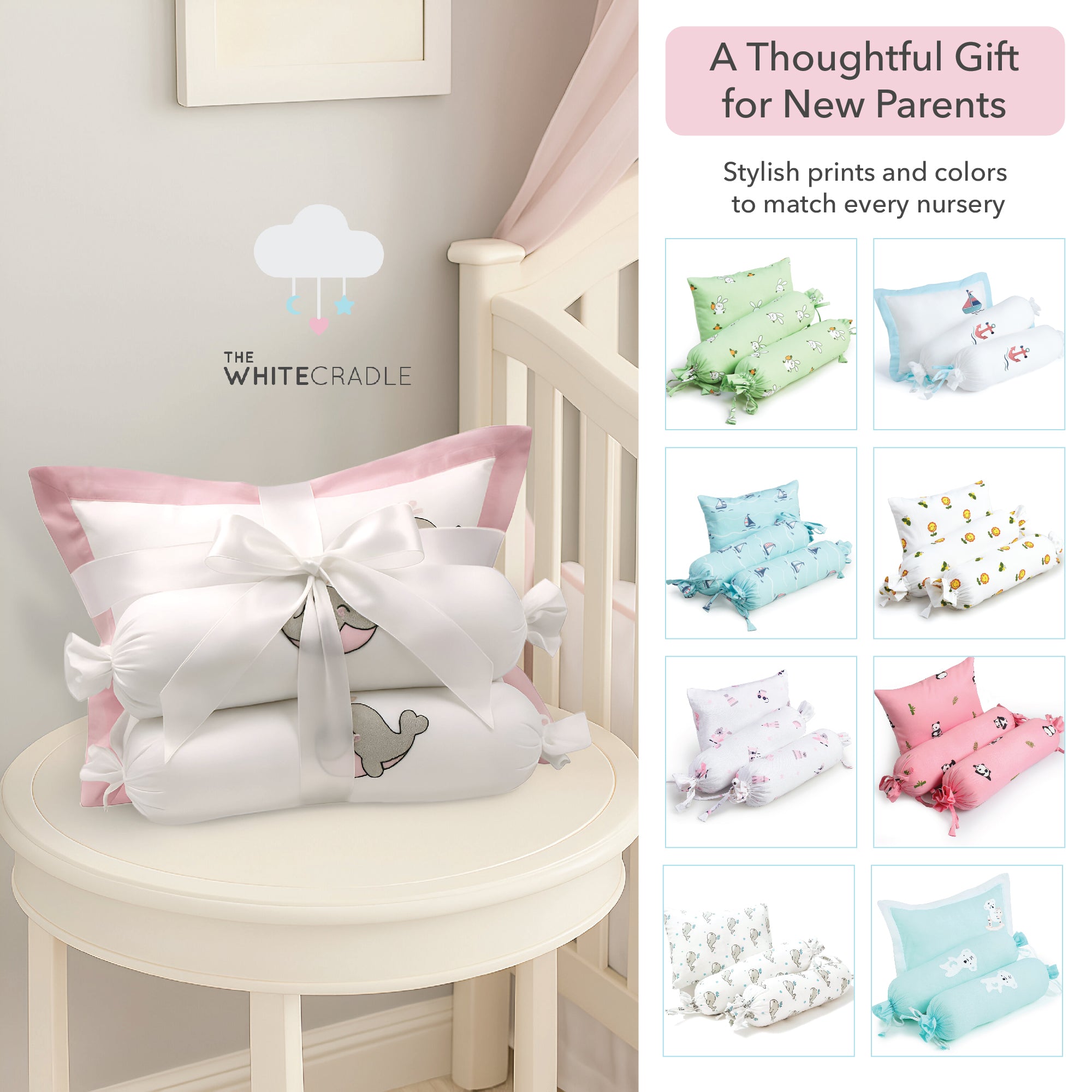 Beautiful cot pillow and two bolster set made with our soft Cotton Muslin fabric. They're filled with a high-quality virgin polyester fibre, which is very soft.