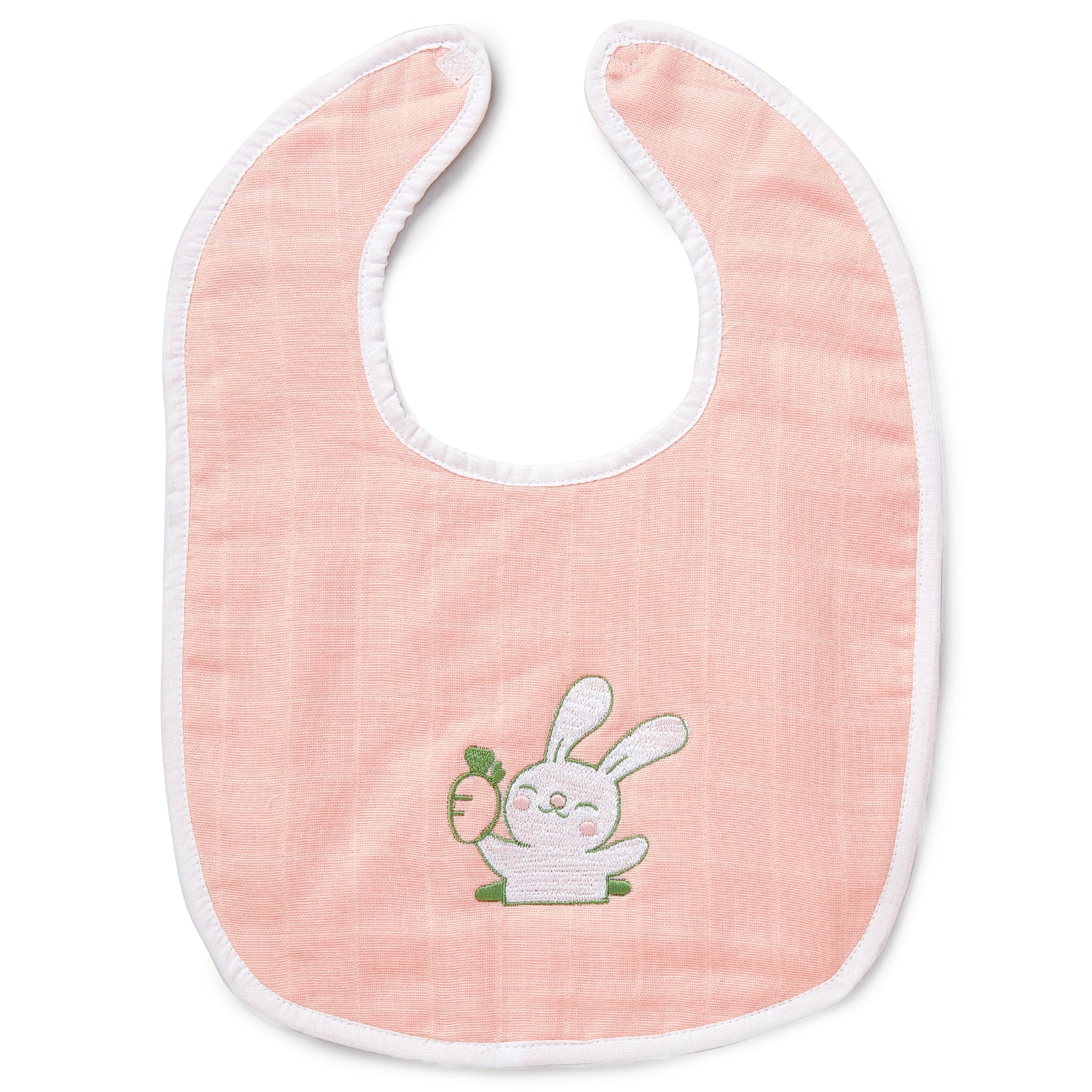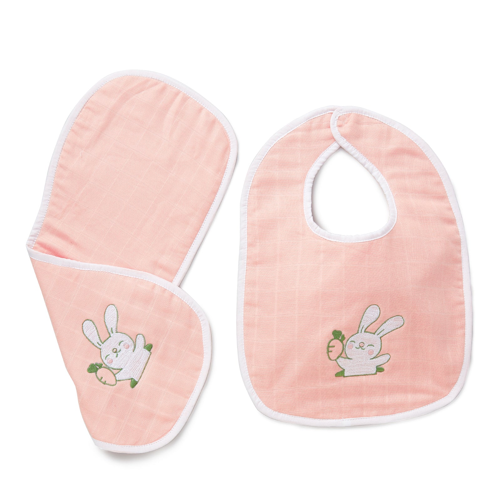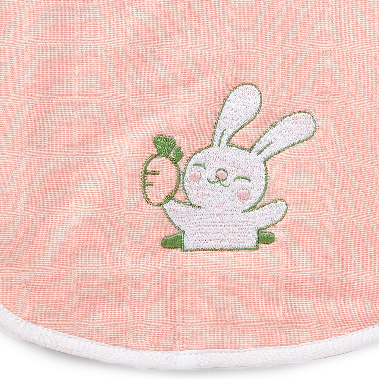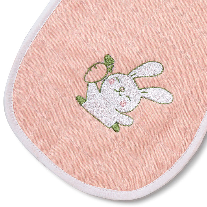 Pink Rabbit Embroidery Feeding Bibs And Burp 2 Pcs